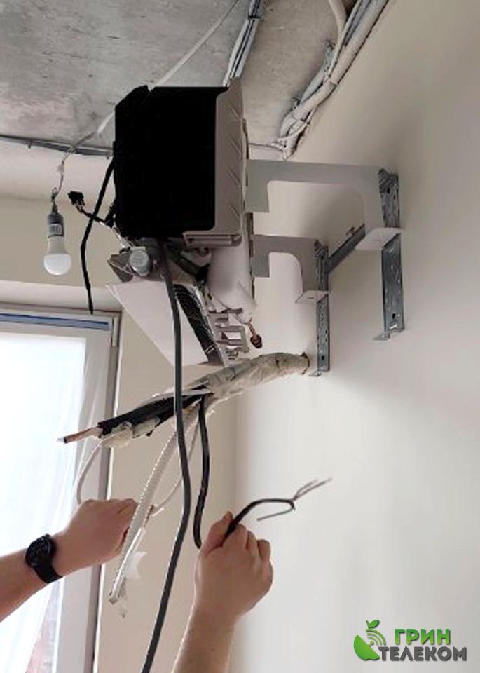 - прокладка фреоновой магистрали, дренажной системы и электрокабеля;